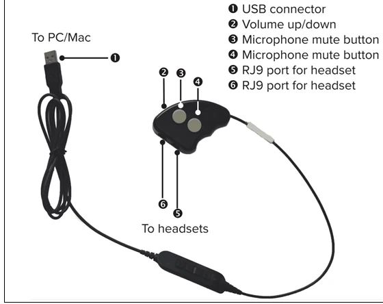 - PC/Mac adapter for RJ9 DECT headsets