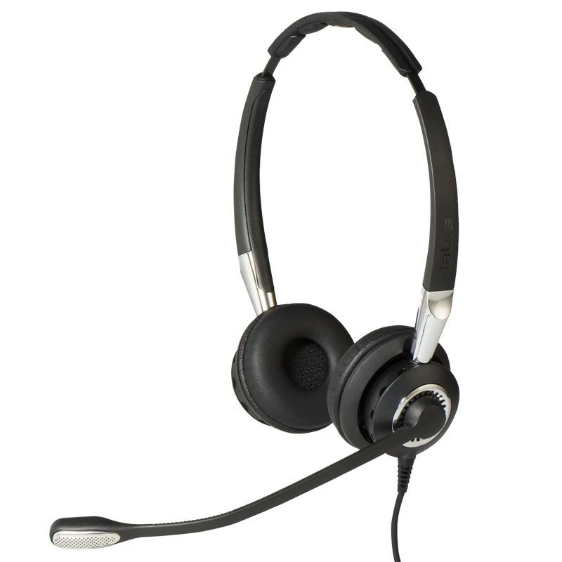 - Binaural headset with ultra noise-cancelling, 360ª rotatable boom microphone
