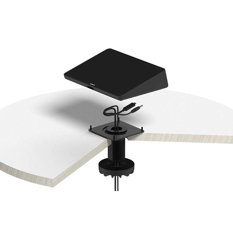 The mount adjusts to tables up to 50mm in thickness and through grommet holes from 51-89mm in diameter, while also supporting down-routing of cables to ensure the space is well used.
