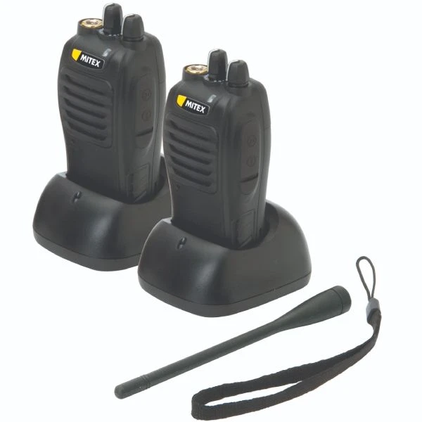 The Mitex Link UHF twin pack comes with two professional, heavy-duty two-way radios. Compact and robust design, these radios are compatible with the Mitex General Range on channels 9 through 15 and all Mitex UHF handheld units on channels 13, 14 and 15. Combining high compatibility and versatility, the Mitex Link UHF pack will not disappoint.