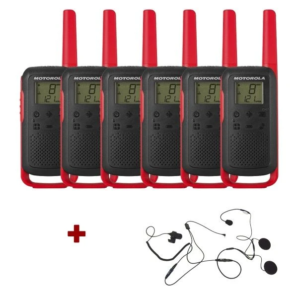 Motorola T62 (Red) Six Pack + Open Helmet Mics