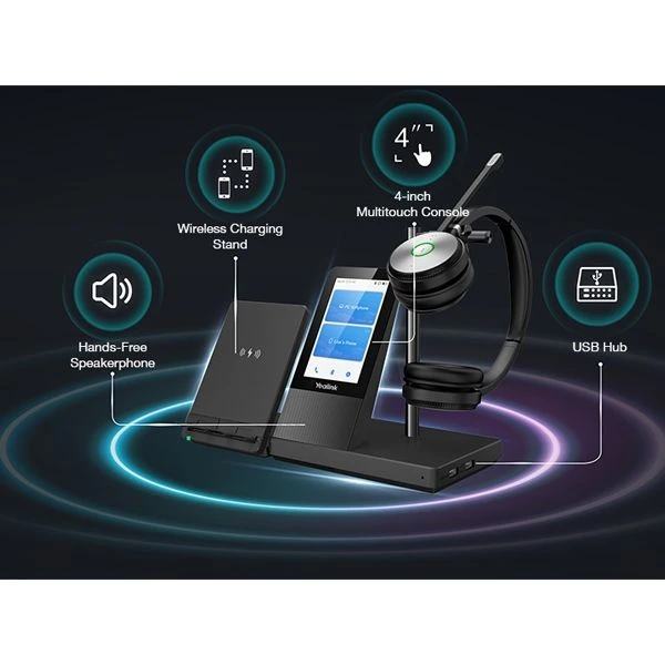 The Yealink WH66 is the Industry-leading DECT wireless headset, with WH66 Dual and WH66 Mono two models, opening an entirely new form of desktop collaboration. Work seamlessly with major UC platforms and integrate natively with Yealink IP Phones. 4.0 inch (480 x 800) capacitive touch screen of base offers newly work experience, just one touch, all control. Act as a workstation, managing phone calls, connecting with multiple devices (desk phone/mobile phone/computer), charging mobile phone wirelessly, and even playing a speakerphone’s role. Best of all, deploying such a multifunctional workstation only needs to plug directly. Easiest things to do, greatest convenience to enjoy